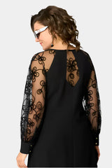 offre la combinaison parfaite d'élégance et de confort. Avec une ligne A décontractée et de magnifiques manches transparentes ornées de motifs brodés, cette robe est idéale pour tous les types de corps et convient à toutes les occasions – des réunions d'affaires aux sorties en soirée.