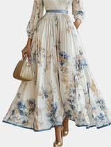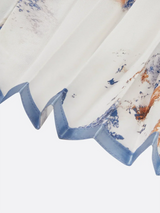 C'est l'incarnation de l'élégance féminine. Avec un décolleté profond, une texture plissée légère et un motif floral subtil, il offre un mouvement aérien et un style aristocratique. La délicate ceinture bleue à la taille accentue la silhouette, apportant de l'élégance à chaque pas.